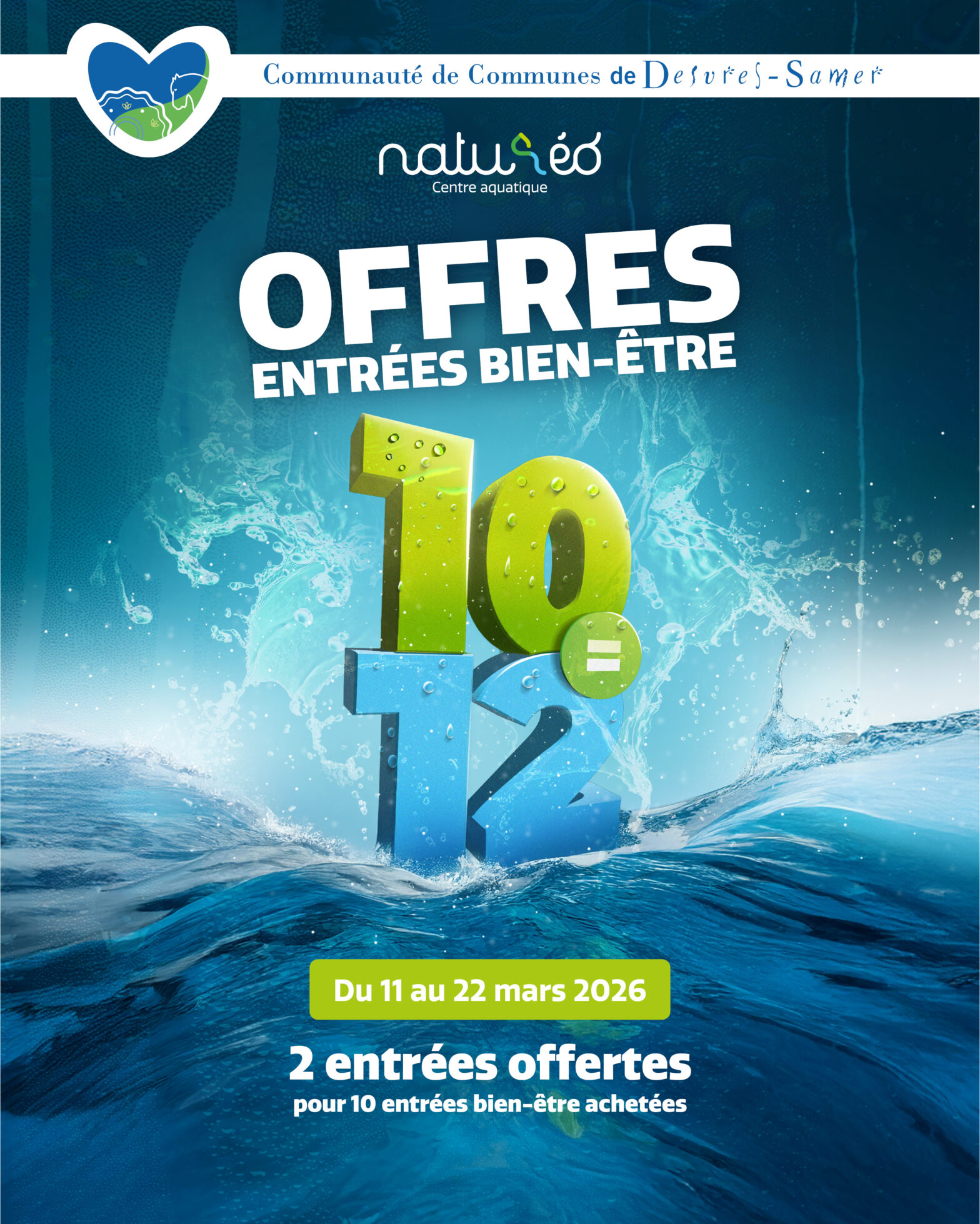 Du 11 au 22 mars 2026, profitez d’une nouvelle offre au centre aquatique Naturéo.