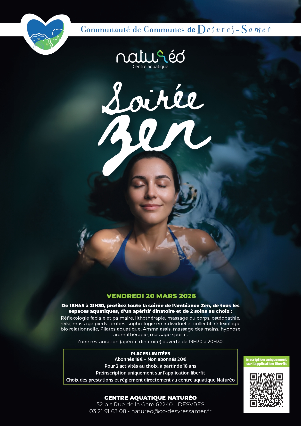 Le vendredi 14 mars 2025, les équipes du centre aquatique Naturéo ont reconduit une soirée zen.